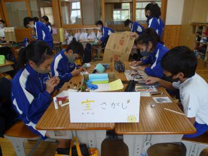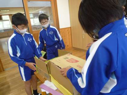 「宝探しがいいよ」「段ボールに色画用紙を貼って飾ろう!」「賞品は折り紙にしよう」と、1年生に喜んでもらえるような屋台を考えて準備を進めました。笑顔と歓声に包まれる交流会になりそうです。
