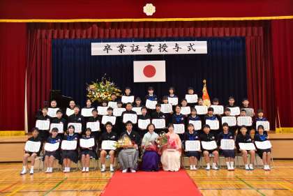 暖かな春の日差しが降りそそぐ今日、令和5年度卒業証書授与式が行われました。多くの方々に祝福され、41名の卒業生が学び舎を巣立ちました。小学校で培った力をバネに、中学校でも自分の夢や願いを大切にして、しっかり活躍してくれることを期待しています。ご卒業おめでとうございます。