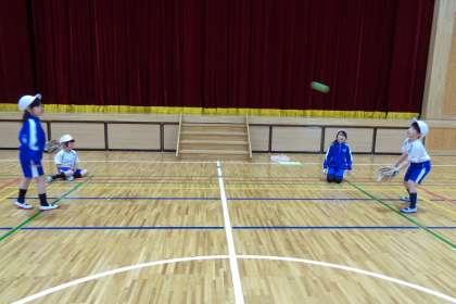 1組は18日に、2組は19日にお楽しみ体育を行いました。大谷選手からプレゼントされたグローブと、ガイナーズからプレゼントされたボールを使ってキャッチボールをしました。初めてキャッチボールをした子がほとんどでしたが、投げたりキャッチしたり、楽しむことができました。