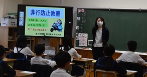 警察署の方が来られて、4年生と6年生に非行防止教室の授業をしてくださいました。「いけないことは絶対に断りたい」や「犯罪は家族や友だち、周りの人も悲しませる」等、絶対に非行はいけないことだと学びました。