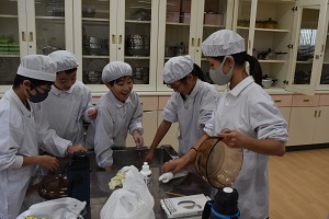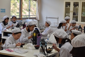 5年生が家庭科の調理実習で味噌汁とご飯を作りました。火加減に気を付け、ふっくらおいしいご飯を炊くことができました。また、いりこで出汁をとった味噌汁と味噌だけの味噌汁を食べ比べ、出汁のうまみに感動していました。調理だけでなく片付けまで、班の友だちと協力してすることができました。また、家でも作ってみてくださいね。