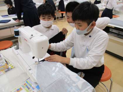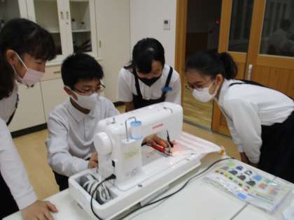 家庭科でエプロン作りに取り組んでいます。思い思いの生地を選び、ミシンで胸元、脇、裾の部分を縫っています。ミシン縫いは、昨年度経験しているので、とても上手です。完成が待ち遠しいです。