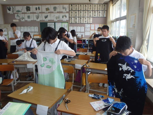 あわやの1日に、6年生はエプロン製作に励み、5年生は芸術にうちこみました。