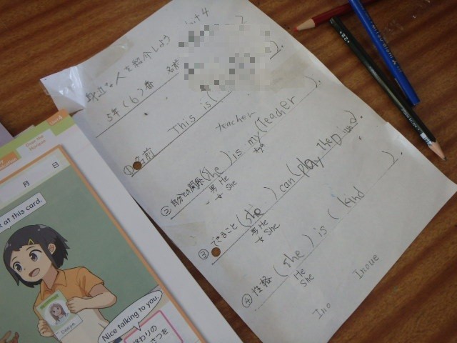 ある男の子は、昨年度担任をしてくれていた、現在育休中の先生を紹介しようと、英文を作りました。