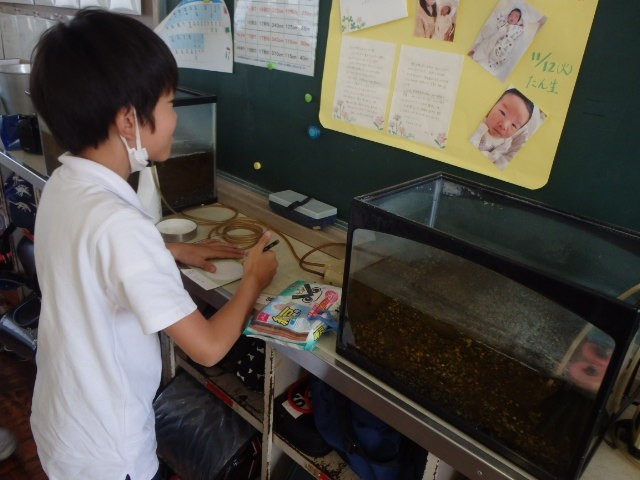 さらに、教室の後ろに飾っているその先生の写真を見ながら、紹介で使う似顔絵を描き始めました。