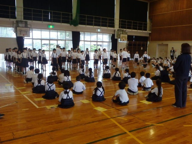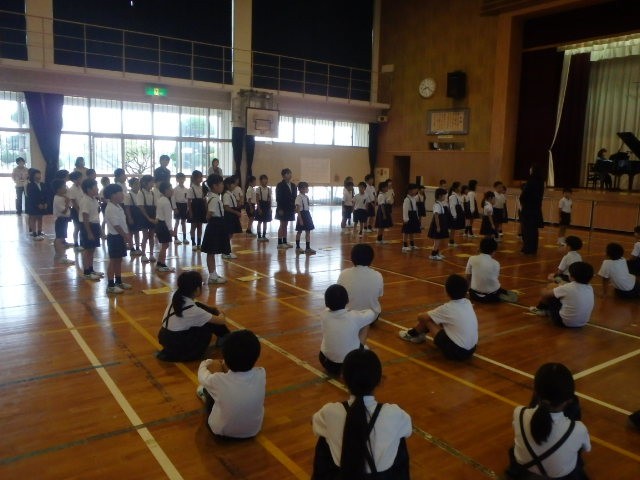 11月の閉校記念式典に向けて、今日、初めての全校合唱練習を行いました。歌う曲は校歌と「ふるさとの色」です。