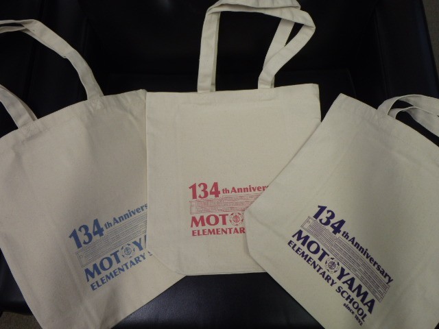 今日、お子さんに、閉校記念トートバックをお配りしました。色は、子どもたちが3色のうちから好きな色を選んでおります。