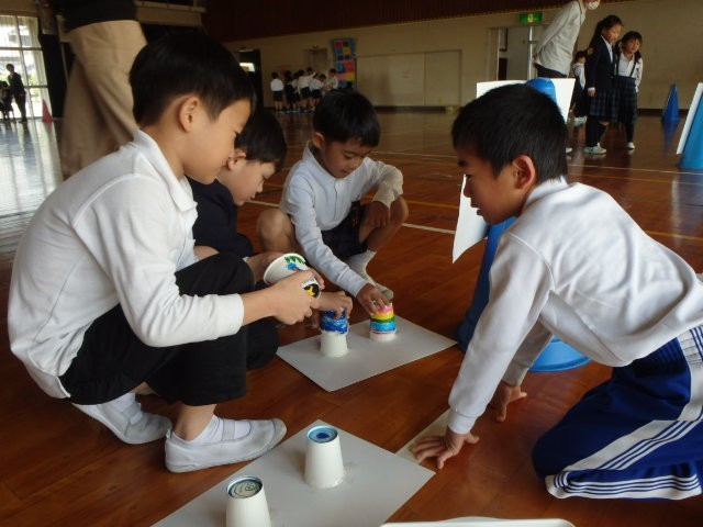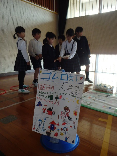 2年生から「おもちゃランド」の招待状をいただいて、体育館へ行ってみると、「ふるさとの昼べ」にも負けない縁日屋台が出ていました。