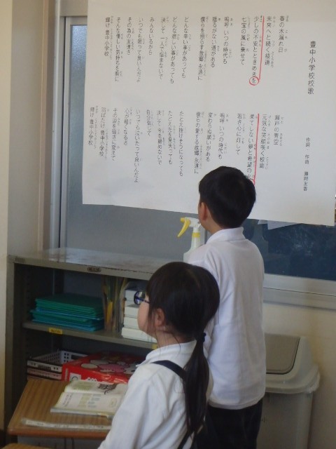 その後、豊中小学校の校歌の練習をしました。