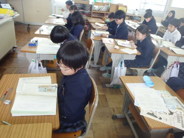 3年生が、物語「ゆうすげ村の小さな旅館─ウサギのダイコン」の学習に続けて、「クマの風船」を読んでいました。シリーズ作品で、共通の登場人物が出てくるお話です。