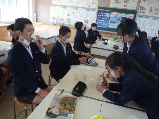 6年生が理科の授業で「利き水大会」をしました。「フランスの水」「大山の水」「水道水」「理科の先生のスペシャルな水」。4種類の水を飲み比べ、そして、多くの子どもが見事に全ての水を言い当てました。