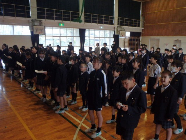 今日、初めて全校で、新小学校の校歌の練習をしました。