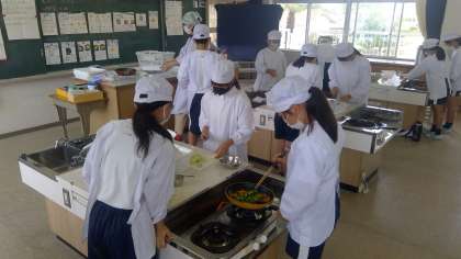 実習後には、「家でもおいしい野菜炒めを作って、おうちの人に食べてもらおう。」と友達と話していました。調理することの楽しさや、自分で作った物を味わう喜びをこれからもたくさん経験してほしいなと感じました。