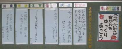 全校生で一丸となって取り組む6月の生活目標は「ろうか、かいだんは、右側をゆっくり歩こう」です。