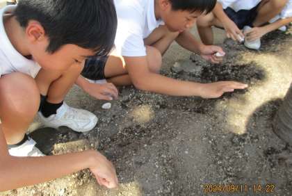子どもたちは、カブといえば、1年生の国語で学習した「おおきな かぶ」のイメージがあるのでしょうか。種のあまりの小ささにびっくりです。