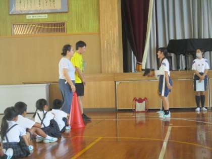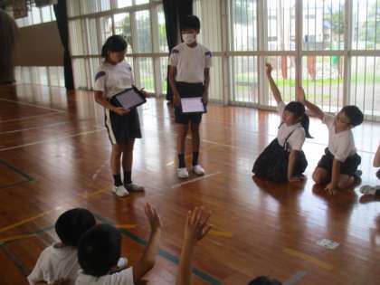 朝の全校朝会は、生活目標の周知と「表現タイム」でした。