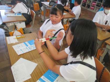 今日、香川県ユニセフ協会の方が6年生の教室を訪れ、ユニセフの活動や子どもの権利についての出前授業をしてくださいました。