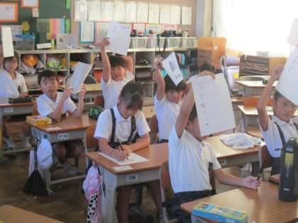 小山先生には、来月2日にもお越しいただき、またパフォーマンスを見せていただきます。その時には、小山先生の作品の周りに、本山小学校の児童一人一人の名前を添えます。