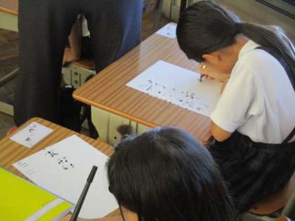今日の書写タイムで、3年生は、その「名前」作品を作りました。自分らしい字の作品を誇らしげに見せてくれました。書道パフォーマンスの後には、小山先生の作品とともに、この147名の名前も飾る予定です。どうぞお楽しみに。