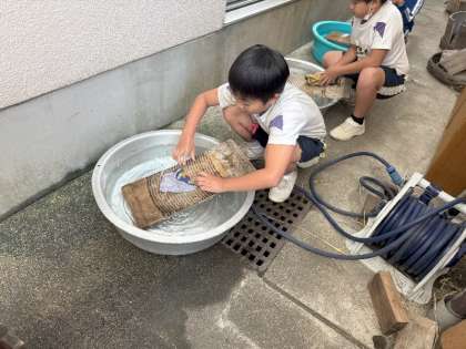 先ほどのブログに掲載したICTとはちがった魅力を3年生が体験してきました。詫間町民俗資料館の見学です。洗濯板でハンカチを洗い、それに炭火アイロンをあてた時には、その効力に「すごーい。こんなにしわが伸びるんだ!」と感嘆の声が上がりました。