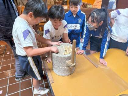 また、石うすできな粉をひき、おにぎりにまぶして食べました。
