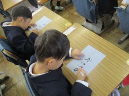 「とめ」や「はらい」に気を付けながら、平仮名や片仮名、習ったばかりの漢字の練習をします。すぐ乾き、跡が残らないので、どんどんチャレンジすることができます。