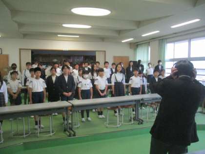 この日の演奏に向けて、6年生の有志で新たに楽器パートを加えました。練習期間は1週間余り。それでも、毎日昼休みに音楽室で練習を重ね、見事に完成させました。