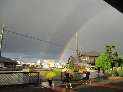 そんな頑張りへのご褒美でしょうか。帰りには、空に大きく二重の虹がかかっていました。