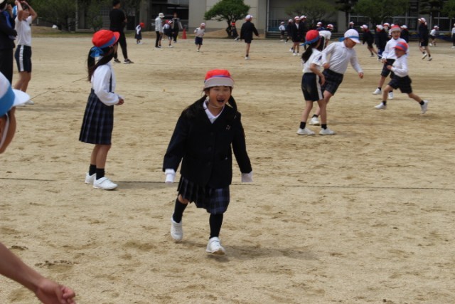 1年生が緊張して自己紹介に戸惑っていたら、周りの上級生がやさしくサポートしていました。色別のふれあいタイムでは、上級生も1年生以上に思いっきり楽しんでいました。