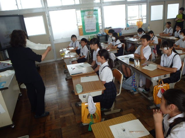 6月9日に「認知症サポーター養成講座」を受講した5年生。その5年生が、今日は介護福祉士の方をお招きし、「いのちのせんせい」の授業を受けました。
