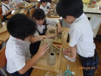 3年生が紙版画を作っています。今日は、生き物の形を作りました。これを版にして色...
