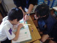 朝、運動会予行練習に向けて、運動場では高学年が準備をしている傍ら、1年生が教室...