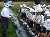 2年生が、学校の近くの畑に、サツマイモの苗を植えに行きました。 畑には、すでに...