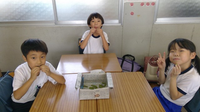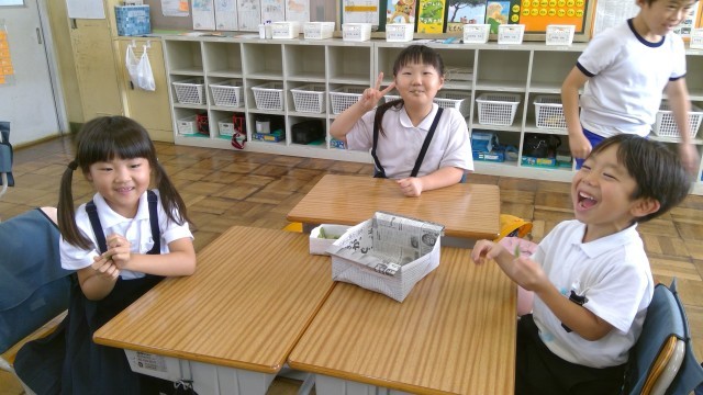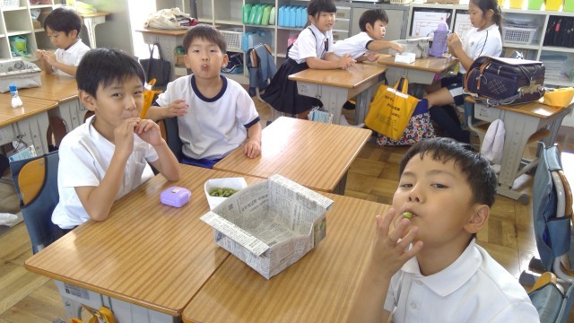1学期の終わりに、エダマメ第2弾!として、学級園に苗を植えていました。酷暑の夏休みでしたが、しっかり育ってくれて、今日収穫することができました。大きなザルに2杯分のたくさんのエダマメが採れましたが、2年生で全部ペロリと食べてしまいました!次は学級園に何を植えようかな?また楽しく考えたいと思います。
