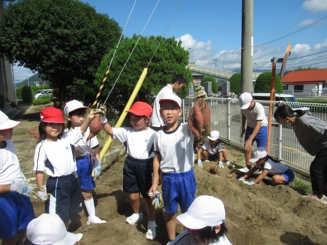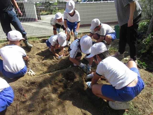 土をどんどん掘っていくと、大きなサツマイモがでてきて、とても嬉しそうでした。