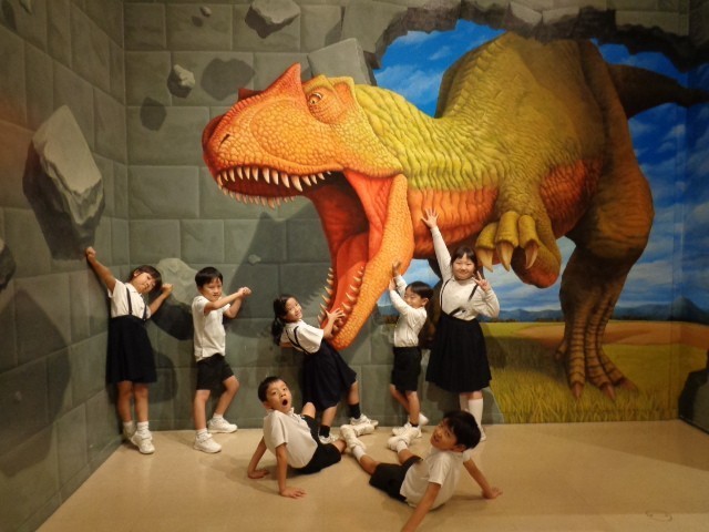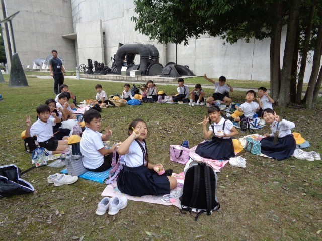 1・2年生で、愛媛県総合科学博物館へ行きました。行きのバスの中から、クイズを出したり、ダジャレを披露したり、歌を歌ったり、とても楽しい雰囲気で出発しました。博物館では、自然館や科学技術館、産業館で見学や体験をしたり、プラネタリウム観覧を楽しんだり、「もう終わり~?」の声が聞こえてくるくらい、あっという間に感じた楽しい時間を過ごしました。お弁当タイムには、2年生全員で円になって食べたのも、いい思い出になりましたね。比地大小学校最後の遠足、お天気に恵まれ、全員揃って元気に行けてよかったです。また、おうちでも今日の遠足のお話を聞いてあげてくださいね。