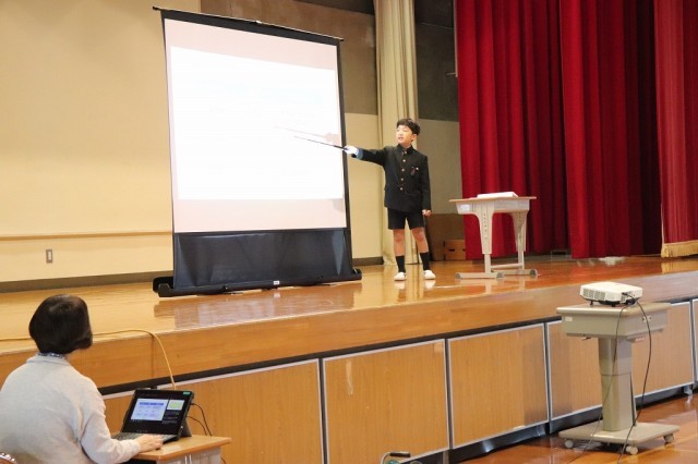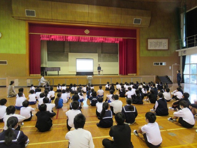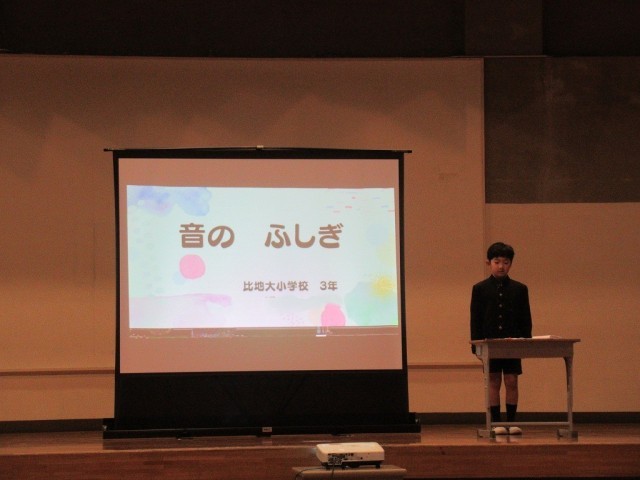 3年生の代表児童が、三豊市と観音寺市の代表として、香川県の科学体験発表会に参加します。朝会の時間に、全校生の前で発表をしました。大勢の人の前での発表となりましたが、聞きやすい速さで、大きな声で分かりやすく、落ち着いて発表することができました。音のふしぎについて研究し、糸電話を使った実験をしていたので、低学年の児童も興味深そうに、静かに聞いていました。来年の夏休みには、今日の発表を参考にして、多くの児童に自由研究に取り組んでもらいたいです。