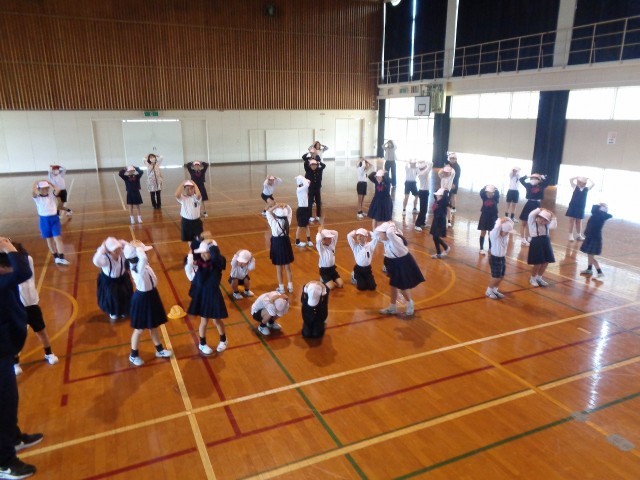 5年生では、学級活動で「全校生が楽しめる活動を考えよう」ということで、3つのグループに分かれてなかよし遊びを考えました。