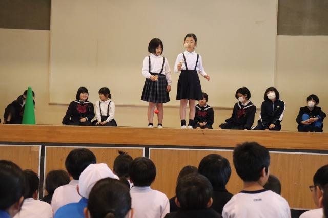 4日目は、描いた絵や折り紙で作った作品、自動車GTRの紹介などがあったり、盛り上がったクイズや2年生の九九発表があったりしました。