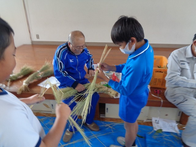 わらをよったりねじったりするのに苦戦しましたが、地域の方々の協力もあり、きれいなしめ縄を作ることができました。