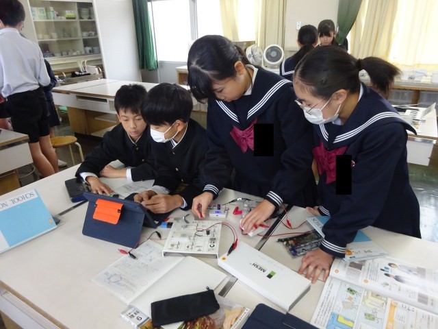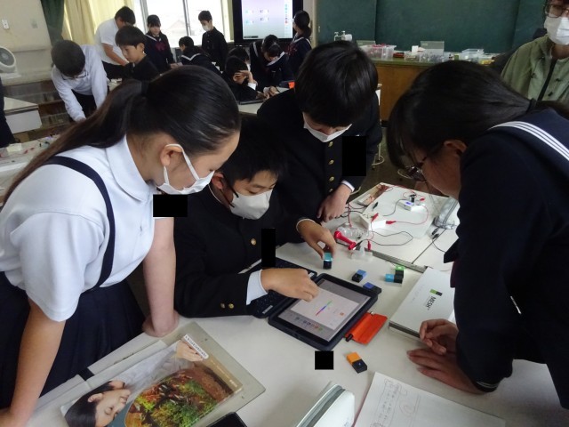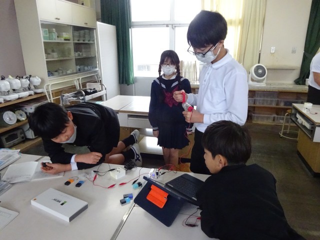 理科の時間に、MESHというアプリを使って、プログラミングを行いました。
