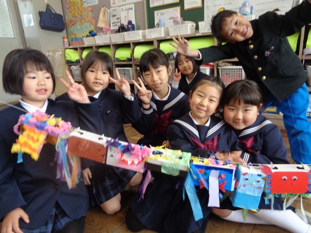 カニ、ペンギン、犬、ゴリラ、鳥・・・などいろいろなものを作り、すべったときにどんな飾りがついていたらステキかな?と考えて、みんな楽しんで完成させました!今日は、スルスルビューンする日!!!高いところからすべらせて、大満足の1年生でした☺