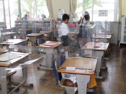 久しぶりのそうじ 公開日 2021/09/01 更新日 2021/09/01 学校全体 9月1日(水) 朝の会の後、久しぶりの掃除をしました。一人ひとりの机に、飛沫防止のパネルを設置しているので、掃除がしにくかったかもしれません。