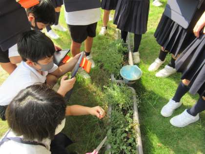 総合的な学習に時間に4年生は、香川本隆と除虫菊を育てています。1学期に、笠田高校から苗をいただき、一緒に植えたものです。今日、除虫菊の花を初収穫しました。これからも収穫が続いていくそうです。