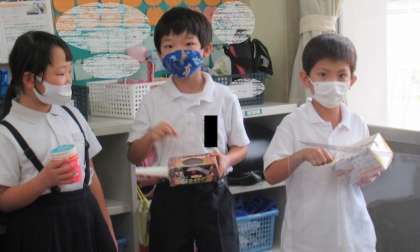 手作り楽器で(2年生) 公開日 2021/09/13 更新日 2021/09/13 学校全体 9月13日(月) 音楽の時間、2年生は手作り楽器で、マツムシやコオロギ、クツワムシなどの虫の声を表現していました。最後には、「虫の声」の曲に合わせて、演奏していました。