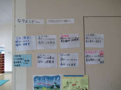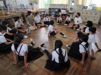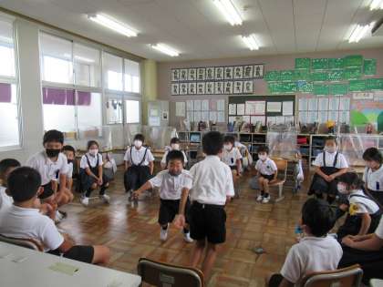 6年生がリーダーになって、全校生で遊びました。7月は室内遊びをしました。かるたやハンカチ落とし、フルーツバスケット、いす取りゲームなど、色別班ごとにわかれて、楽しく遊びました。下級生に遊びの約束を優しく教えてあげる上級生らしい姿が見られました。