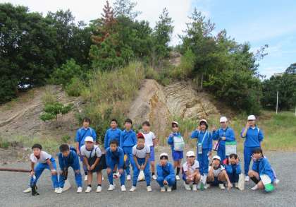 余木崎海岸では、砂岩とけつ岩(泥岩の仲間)が交互に何度も積もっている様子を観察したり、採取したりして、触感や見た目、色などを詳しく調べることができました。