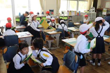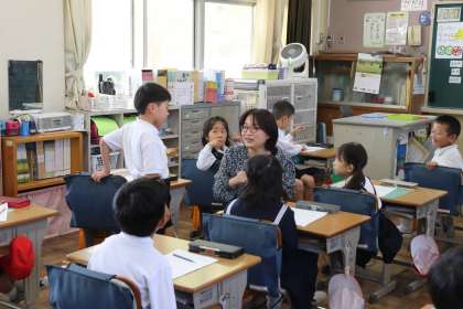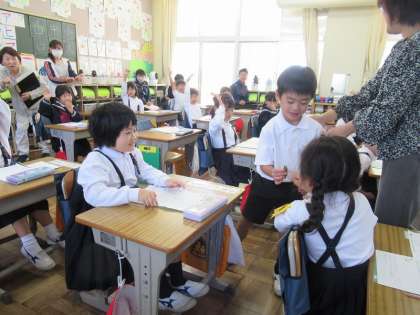 生活科「生きものとなかよくなろう」の学習では、自分が育てたい虫を捕まえて育てました。虫のひみつを知って仲良くなるために、虫メガネを使って観察したり、手で触って感触を確かめたりしました。自分が見つけたひみつを友だちに発表して、どの虫のひみつも知ることができました。虫が苦手と言っていた子もバッタのお腹を触ってツルツルしていることを確かめて、にっこり。またいろんな生きものと仲良くなりたいなという声が多く聞こえてきました。
