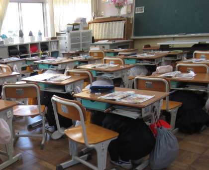 本校においても、午前10時に、1分間の身を守る3つの安全確保行動(まず低く、頭を守り、動かない)を全校一斉に行いました。