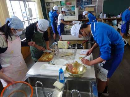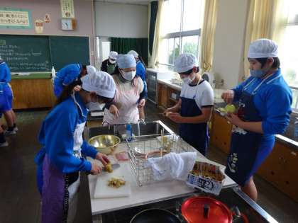 6年生は、ゆでて、炒める料理に挑戦しました。ジャガイモをゆでて、玉ねぎとベーコンをいっしょに炒めました。とてもおいしくできました。
